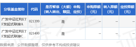 本站音尘,9月5日广发基金处治有限公司发布《对于广发中证红利来回型绽放式指数证券投资基金发起式联接基金暂停机构投资者大额申购(含改动转入、如期定额和不定额投资)业务的公告》。公告中教唆,为保护基金份额捏有东谈主利益,自2025年9月5日起广发中证红利来回型绽放式指数证券投资基金发起式联接基金暂停机构投资者大额申购(含改动转入、如期定额和不定额投资)业务,申购、改动转入上限金额为10.0万元,下属分级基金休养明细如下: